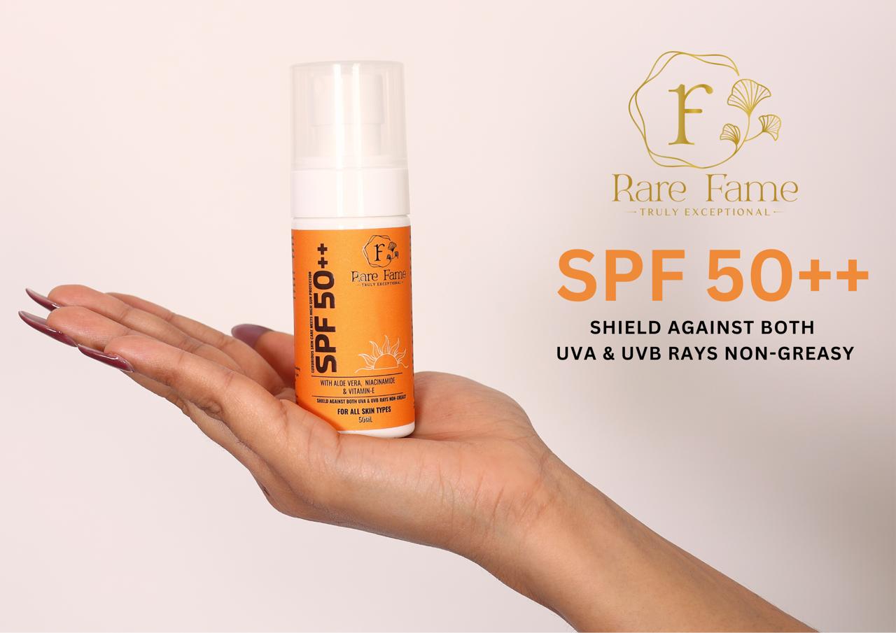 Advanced Formulation: Rare Fame SPF 50++ incorporates an advanced formulation that provides high-level protection against both UVA and UVB rays.