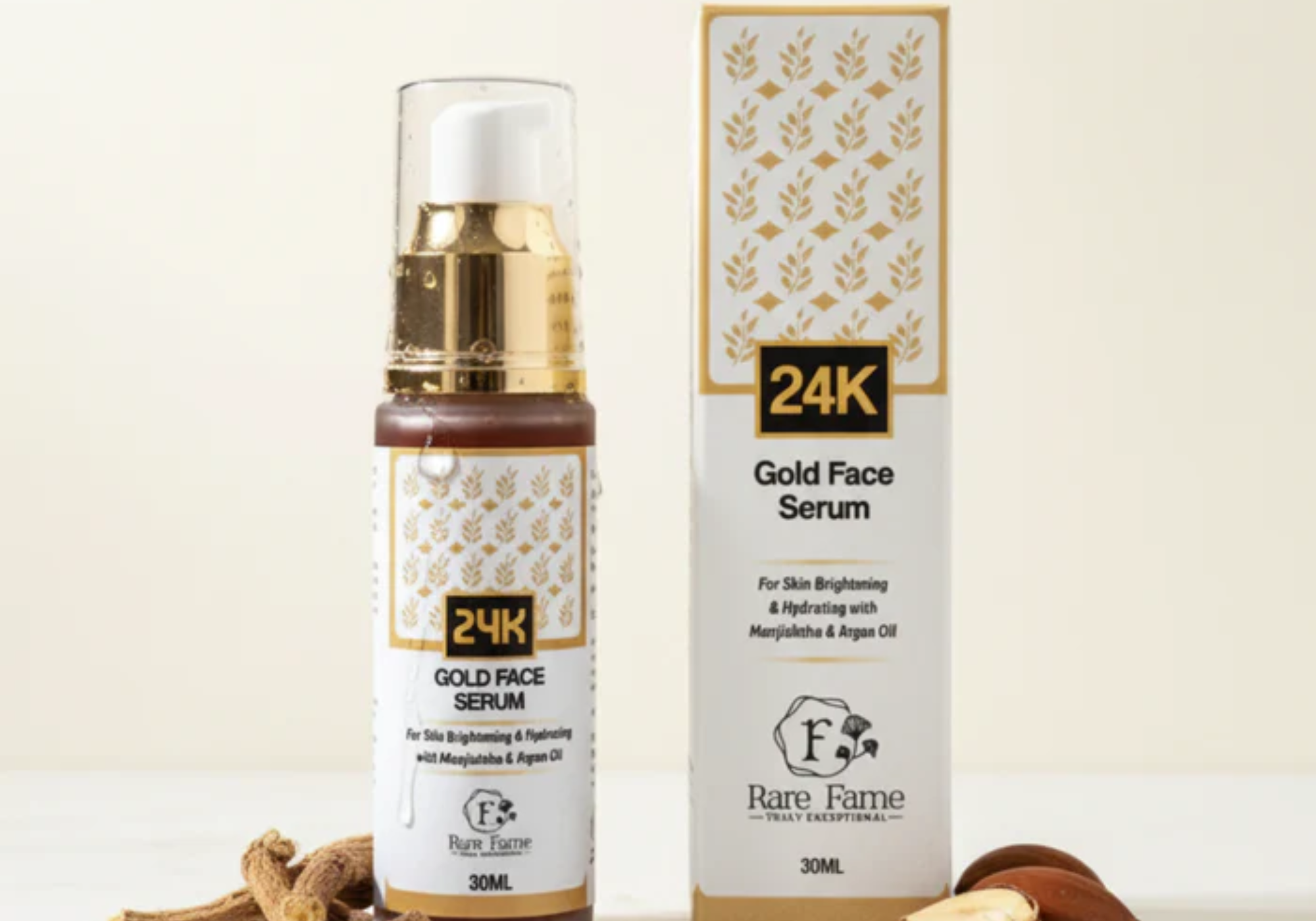 Improved Blood Circulation: Rare Fame 24K Gold Face Serum having Gold particles in it which enhance blood circulation, which can lead to improved skin health. Better circulation helps deliver oxygen and nutrients to the skin cells, promoting a healthier and more radiant complexion.