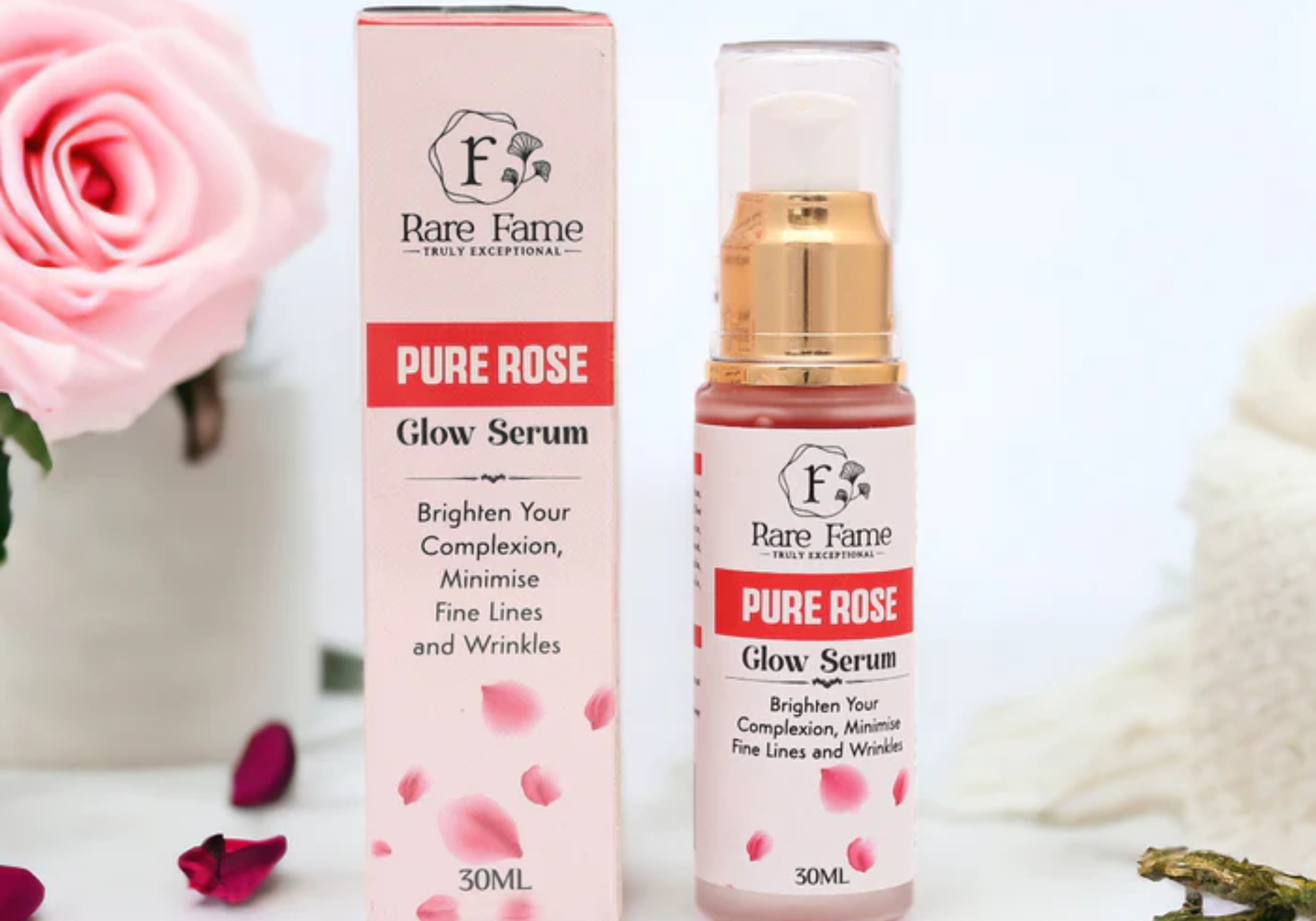 Introducing Pure Rose Glow Serum, a powerful and all-natural serum that nourishes and revitalizes your skin. Made with only pure rose extract, this serum provides deep hydration and increases skin's radiance by 75%. Experience the benefits of Pure Rose for a truly glowing complexion. Enjoy Free Shipping Across India with Rare fame!